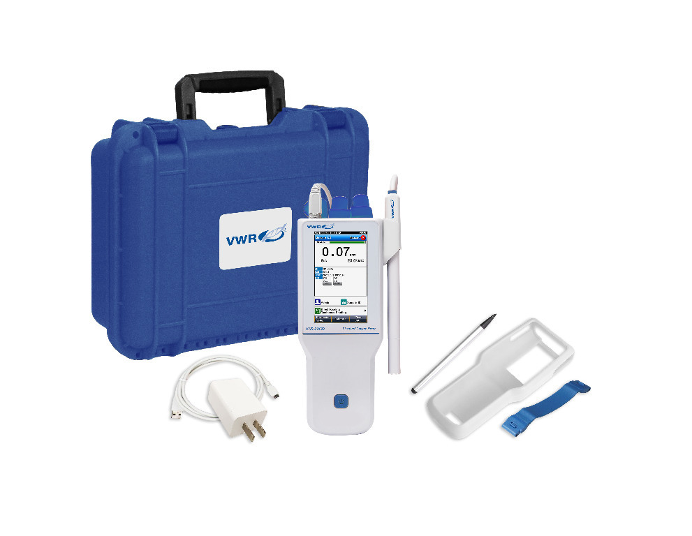 The VWR-DO900 meter provides accurate and reliable measurements of dissolved oxygen concentration and dissolved oxygen saturation. The easy-to-use VWR-DO900 portable meters provide accurate dissolved oxygen measurements for accurate water quality testing. The intelligent operation system provides features including user management, calibration management, electrode management, method management, and many other advanced capabilities. • High-resolution color touch display (4.3") • Air-saturated water or zero-oxygen calibration capabilities • IP 65 waterproof • Automatic or manual temperature compensation capabilities • Auto-read, timed-read, and continuous-read measurement options • Data capacity of 1000 sets for each parameter (GLP-compliant) • Rechargeable battery • Auto barometric pressure compensation All meters include electrode holders (2), a meter silicone rubber case, carrying case, touch screen pen, and hand strap. For use with the DO1 polarographic DO electrode (77618-816). This product comes with a three-year meter warranty. For application-specific recommendations, please reference the 'VWR Electrode Selection Guide' located in the related information section. The VWR-DO900A meter is available with the DO1 polarographic DO electrode, zero-oxygen calibration solution, DO electrolyte, and 3-piece electrode membrane cover (Cat. No.: 77618-938). The VWR-DO900 meter without an electrode is also available (Cat. No.: 77618-936).