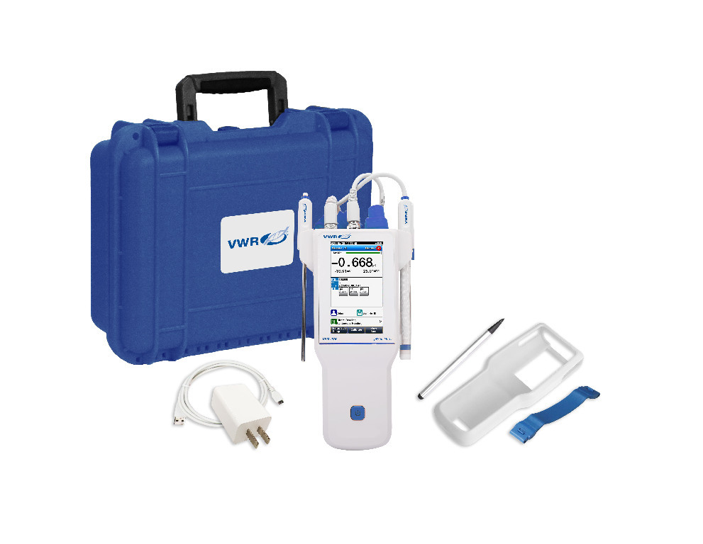 Here is the corrected text: The VWR-I900 meter provides accurate and reliable measurements of ISE, pH, mV, and temperature in any environment. It features automatic or manual temperature compensation capabilities, auto-read, timed-read, and continuous-read measurement options, and automatic electrode diagnosis with pH slope and offset display. The easy-to-use VWR-I900 portable meters provide accurate measurements in the field and laboratory. The intelligent operation system provides features including user management, calibration management, electrode management, method management, and many other advanced capabilities. The included carrying case allows for easy transport of all items to make measurements on the go even easier. For application-specific recommendations, please reference the 'VWR Electrode Selection Guide' located in the related information section. Key Features: * High-resolution color touchscreen (4.3") * 1-8 point calibration with standard recognition for pH * Built-in ion methods including F-, CL-, K+, and Na+ * Selectable pH buffer groups including NIST, DIN, GB, USA * IP 65 waterproof * Ability to save 1000 sets of measurement results (GLP-compliant) * Rechargeable battery * Three-year meter warranty All meters are supplied with: * Electrode holders (2) * Meter silicone rubber case * Carrying case * Touch screen pen and hand strap.