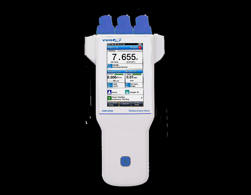 The VWR-M900 portable multi-parameter meter provides accurate and reliable measurements of pH, conductivity, ions, and dissolved oxygen. This easy-to-use meter offers versatility in measurement parameters in a compact design. The intelligent operation system features user management, calibration management, electrode management, method management, and many other advanced capabilities. The carrying case allows for easy transport of the meter and accessories.
