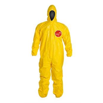 A lightweight, and durable fabric, DuPont™ Tychem® 2000 utilizes the strength of DuPont™ Tyvek® fabric and a polyethylene coating. Tychem® 2000 fabric provides at least 30 minutes of protection against 42 chemical challenges. Tychem® 2000 is used for light splash protection in a variety of industrial environments, including petroleum refining, pulp and paper manufacturing, food processing, chemical processing, and pharmaceutical manufacturing.Taped seams provide strong chemical resistance against heavy liquid splashes. A sewn seam is covered with a strip of compatible chemical-resistant material through heat sealing.Attached hood with elastic around face openingStorm flap covers zipper which can be sealed by the wearer with adhesive strip to prevent intrusion at zipperElastic opening for tighter fit at wristElastic opening for tighter fit at ankle
