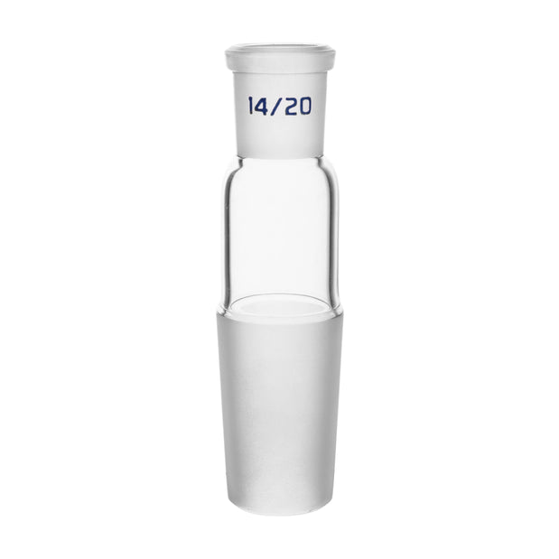 Useful for the connection of dissimilarly sized standard ground joints Standard taper outer joint at the top Larger standard taper inner joint at the bottom Made of high quality borosilicate 3.3 glass conforming to ASTM E-438, Type-1, Class-A requirements Autoclavable at 121 C