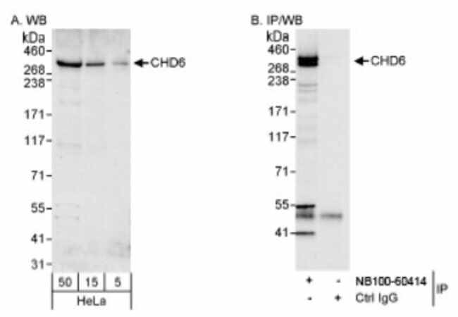 CHD6 Polyclonal specifically detects CHD6 in Human samples. It is validated for Western Blot, Immunoprecipitation.
