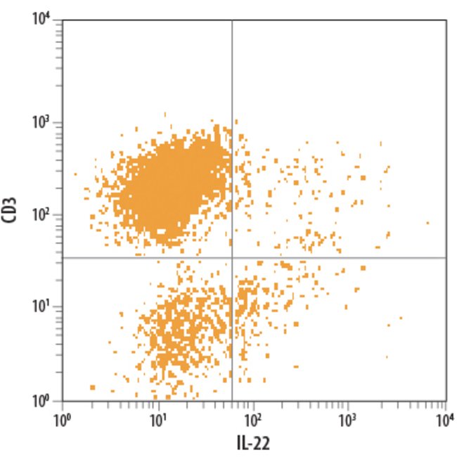 IL-22 Monoclonal specifically detects IL-22 in Human samples. It is validated for Intracellular Staining by Flow Cytometry.