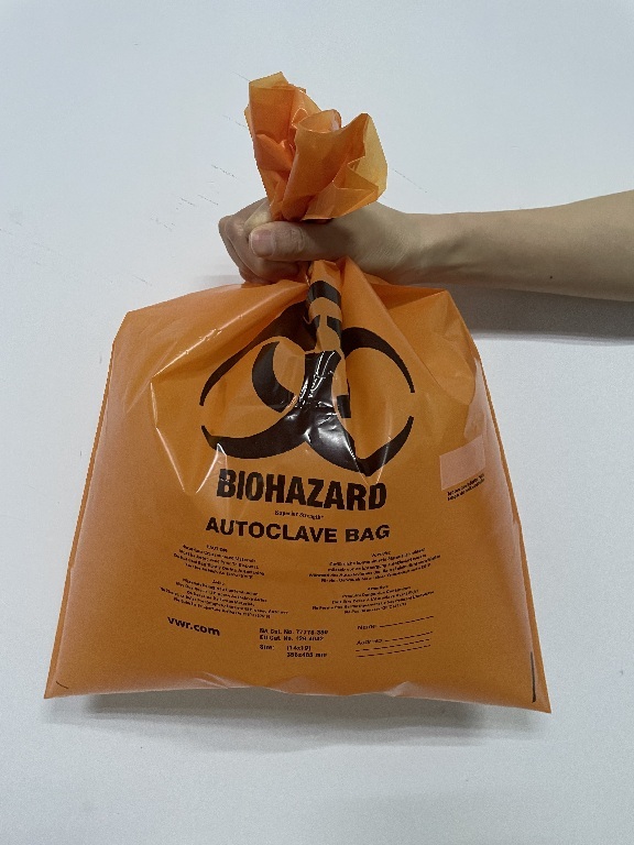 Highly resistant to tears and punctures |, 08_Certifications: | ISO 9001:2015, Sedex. |, Capacity: 27 L, Color: Orange, Biohazard printed bag, with temperature indicator, Dimensions: 485×610 mm (19×24"), Material: PP, Thickness: 50 µm/2 mil, | Sturdy, temperature-resistant bags are ideal for disposal of non-hazardous waste that must first be autoclaved. Bags can also be used for autoclaving other products. |, Bags are supplied complete with 20 cm twist tie wire closures that allow expansion of the bag and ventilation when cooling. Bags meet the requirements of the 165 g puncture inspection standard as described in ASTM D1709. |, 02_BulletPoint: | Autoclavable up to 135 ℃ (275 ℉) maximum |