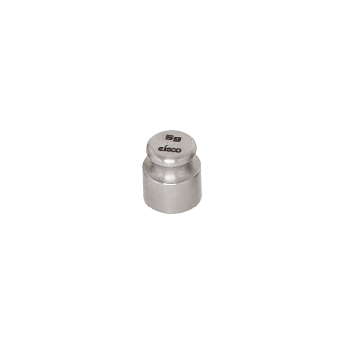 This Eisco 5g balance weight is made from solid stainless steel and measures 3/8 inch in height and diameter. The mass is marked “5g” on the top surface and is ideal for balance calibration and experimental use. Designed for physics labs, metric mass sets, and general scientific applications requiring standardized weights.