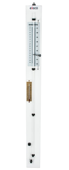 Syphon Barometer. Clear markings are easy to read. It displays both Celsius and Fahrenheit graduations. The instrument measures 41 inches long and 3.5 inches wide. No mercury is supplied.