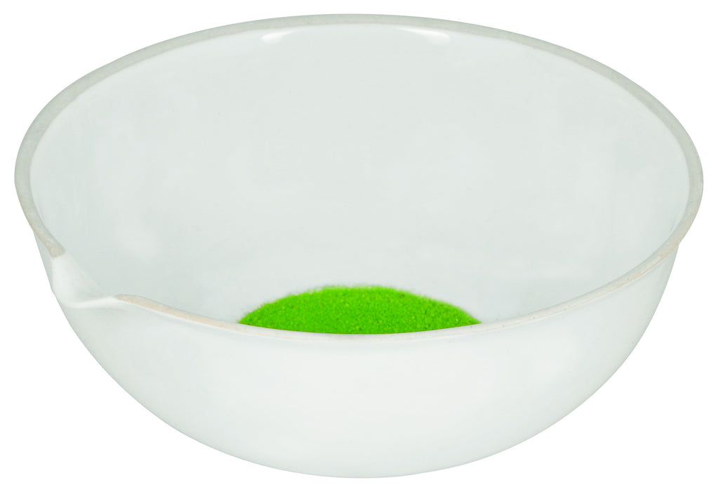 Porcelain, deep form, with spout. Superior quality. Fully Glazed except outside base. Perfect for science and home laboratories. Approximate 275ml capacity. Basin measures approximately 4.3" in diameter and 1.75" tall.