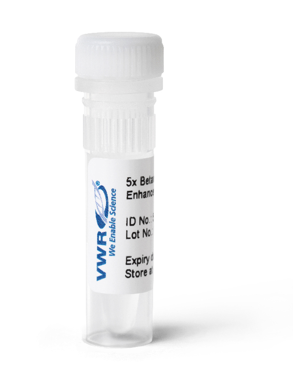 CAS: 107-43-7, Formula: C₅H₁₁NO₂, Grade/Usage: PCR, MDL: MFCD00012123, Betaine enhancer is especially effective when used with high GC-rich regions or templates with a high degree of secondary structures. It has a decreasing effect on the primer melting temperature., The performance of Betaine Enhancer Solution 5 M is superior compared to standard enhancers such as formamide, DMSO, TMAC, BSA and non-ionic detergents. Betaine Enhancer Solution is an excellent enhancer especially when used with GC-rich regions or templates with a high degree of secondary structures. Betaine has a decreasing effect on the melting temperature of DNA and primers. Therefore, denaturation temperatures as well as primer annealing temperatures should be reduced by 1 – 5 °C. The optimal annealing temperature should be determined individually for each reaction., 02_BulletPoint: Enhances amplification on GC-rich and difficult DNA targets | Lowers the melting temperature, 13_Caution: For Research Use Only. Not for use in diagnostic procedures., Final SAP Desc Link: 2992793, SAP Description Status: Ready, 001_test: Functional test - 1X Betaine Enchancer Solution is tested for amplification of 613 bp fragment from human genomic DNA using Taq DNA polymerase at standard PCR Conditions, 001_result: Passes test, 002_test: Volume check- fill volume >= 0.1 ml per tube, 002_result: Passes test, MW_value: 117.15 g/mol, DESC_CALC_test_BP: Betaine enhancer solution 5M, Storage temperature_value: Freezer, CAS: 107-43-7, Formula: C₅H₁₁NO₂, MDL: MFCD00012123, Betaine enhancer is especially effective when used with high GC-rich regions or templates with a high degree of secondary structures. It has a decreasing effect on the primer melting temperature., The performance of Betaine Enhancer Solution 5 M is superior compared to standard enhancers such as formamide, DMSO, TMAC, BSA and non-ionic detergents. Betaine Enhancer Solution is an excellent enhancer especially when used with GC-rich regions or templates with a high degree of secondary structures. Betaine has a decreasing effect on the melting temperature of DNA and primers. Therefore, denaturation temperatures as well as primer annealing temperatures should be reduced by 1 – 5 °C. The optimal annealing temperature should be determined individually for each reaction., 02_BulletPoint: Enhances amplification on GC-rich and difficult DNA targets | Lowers the melting temperature, 13_Caution: For Research Use Only. Not for use in diagnostic procedures., Size: 5×1 ml, Final SAP Desc Link: 2992793, SAP Description Status: Ready, 001_test: Functional test - 1X Betaine Enchancer Solution is tested for amplification of 613 bp fragment from human genomic DNA using Taq DNA polymerase at standard PCR Conditions, 001_result: Passes test, 002_test: Volume check- fill volume >= 0.1 ml per tube, 002_result: Passes test, MW_value: 117.15 g/mol, DESC_CALC_test_BP: Betaine enhancer solution 5M, Storage temperature_value: Freezer, Cat. No.: 76620-530