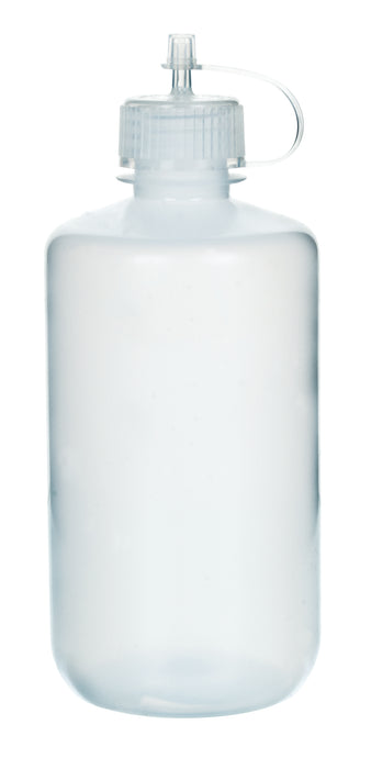 This unique low-density polyethylene dropper bottle comes with a screw cap and spout, allowing for the dispensing of small, uniform drops of liquid. It has a 15mL capacity and measures 5.5 x 2.5 inches.