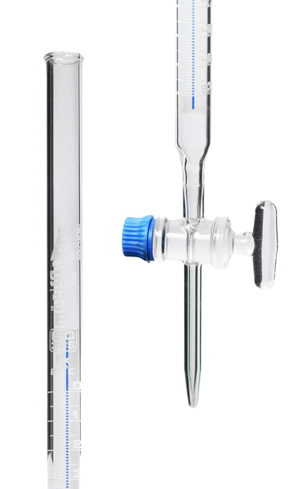 Burettes Schellbach-single bore, glass stopcock, capacity 50ml, Sub. Div. 0.10ml Tolerance ± 0.10ml, class 'B', White Graduation, Each