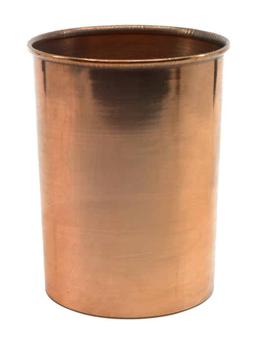 This copper calorimeter features parallel sides and a rolled rim. It does not come with a stirrer. The dimensions are 4 inches in height and 2.75 inches in diameter.