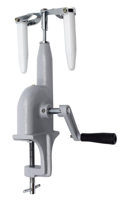 Single speed, hand driven centrifuge that accepts two buckets, which fit tubes up to 15ml. Removable hand crank. Die casted parts, a steel pinion and worm drive. Screw clamps centrifuge to bench or table. Apparatus measures 12" tall, 5" wide and 5" long. This centrifuge includes 2 buckets measuring 4" tall, with an outside diameter of 0.9" and inner diameter of 0.6".