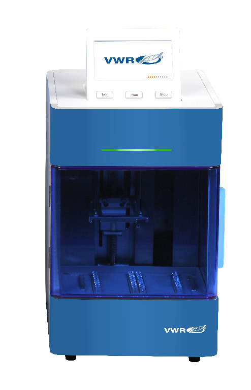 VWR® 16 Sample purification system is a high throughput, automated system that improves the efficiency and reproducibility of magnetic bead-based purification protocols., Capable of processing up to 16 samples at one time, the VWR® 16 sample purification system is easy to set up, program, and operate. Mixing, bead transfer, wash steps, and elution steps are performed automatically, saving time. The purification process can be completed within 10 to 60 minutes depending on the type of reagent kit used and the complexity of the program. | Android™ App or PC software for programming Creating a protocol is simple using VWR® app or PC software; both are included on a USB flash drive with each instrument. The mixing speeds, incubation temperature, and magnet rod movement can all be programmed. When using the Android app on a tablet or phone, the saved protocols can be transferred to the instrument via Bluetooth connection or by using the included barcode scanner. Alternatively, the PC software can be used for programming and transferring the files by USB drive or barcode scanner. | Barcode scanning system The handheld scanner, included with each VWR® 16 Sample purification system, adds a convenient and fast method for loading a protocol onto the instrument. 2D barcodes are supplied by many of the magnetic bead kit suppliers, and these barcodes include the full protocol script for uploading to the instrument. Simply scan the barcode to instantly transfer the protocol. The Android app and PC software can also be used to generate the scannable barcodes. | Protocol optimization The VWR® 16 Sample purification system has been validated with several magnetic bead kits from leading manufacturers and a number of optimized protocols for specific applications are available. To request scripts for specific kits, or for assistance in optimization, please contact VWR® Technical support team at TechnicalProductSupportNA@vwr.com. | Sample temperature control Lysis and elution steps often require elevated temperature for optimal results. The sample chamber incorporates heating strips that can be precisely set to any temperature between ambient 5...120 °C. Both deep well plates and 6-well reagent vessels fit into the contoured heating strips for efficient heat transfer to the sample liquid. Cooling fans in the instrument chamber maintain ambient temperature inside the housing. | Communication ports The VWR® 16 Sample purification system can store up to 100 protocols in its internal memory. These files can be transferred between instruments or to a computer for storage or sharing. Simply insert the included USB drive to export the selected files. Once a protocol has been transferred to the instrument, it can be run via the control panel. | Chamber sterilization A UV lamp (UVC) inside the processing chamber provides effective elimination of most bacterial, viral, and stray genomic DNA contaminants. This additional safeguard reduces the possibility of contamination and downstream amplification of unwanted targets. | Control panel with touchscreen The control panel on top of the VWR® 16 Sample purification system allows for quick selection of stored protocols and instrument control. To run a protocol, select it from the file list, insert the appropriate consumables (plate or sample vessels) and tip combs, and press the start button. Run parameters and operating status are displayed during sample processing. VWR® Consumables | Avantor® offers magnetic tip combs, deep well plates, and 6-well sample vessels specifically designed to fit the instrument. The 8-place tip combs lock into position inside the instrument's processing chamber. There are 2 options for sample vessels: 96 deep-well plates or 6-well sample vessels. For processing up to 16 samples, deep well plates are used. When only 8 or fewer samples need to be processed, the 6-well sample vessels are ideal, and these are loaded onto the included aluminum rack. These sample vessels reduce waste and lower consumable costs when only a few samples need to be processed., 02_BulletPoint: Compatible with all popular magnetic bead kits | Hands-off processing and consistent results | Compact design | Processing capacity up to 16 samples | Programmable with PC software or Android App, 08_Certifications: CE Mark, cUL, 10_Ordering: Android tablet not included (order seperately), VWR® Aluminum sample rack, Cat. No.: 77321-870, Details: Designed to hold up to 8×6-well sample wells, VWR® 16 Sample purification system is a high throughput, automated system that improves the efficiency and reproducibility of magnetic bead-based purification protocols., Capable of processing up to 16 samples at one time, the VWR® 16 sample purification system is easy to set up, program, and operate. Mixing, bead transfer, wash steps, and elution steps are performed automatically, saving time. The purification process can be completed within 10 to 60 minutes depending on the type of reagent kit used and the complexity of the program. | Android™ App or PC software for programming Creating a protocol is simple using VWR® app or PC software; both are included on a USB flash drive with each instrument. The mixing speeds, incubation temperature, and magnet rod movement can all be programmed. When using the Android app on a tablet or phone, the saved protocols can be transferred to the instrument via Bluetooth connection or by using the included barcode scanner. Alternatively, the PC software can be used for programming and transferring the files by USB drive or barcode scanner. | Barcode scanning system The handheld scanner, included with each VWR® 16 Sample purification system, adds a convenient and fast method for loading a protocol onto the instrument. 2D barcodes are supplied by many of the magnetic bead kit suppliers, and these barcodes include the full protocol script for uploading to the instrument. Simply scan the barcode to instantly transfer the protocol. The Android ap