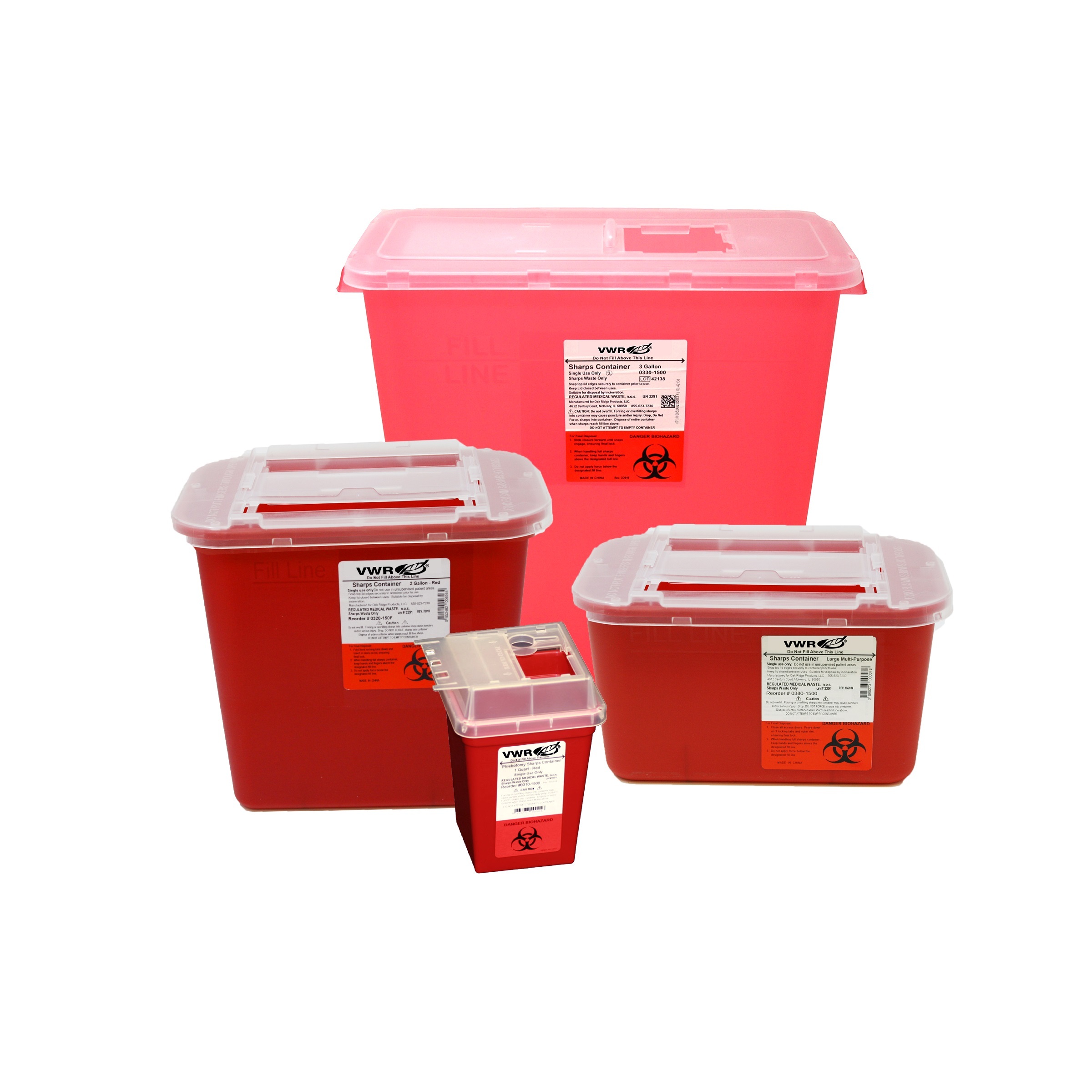 Here is the corrected text: Our containers provide safe disposal of sharps and bio-hazard waste. They are designed for busy professional settings such as laboratories, hospitals, dental offices, and physician offices that require one-handed access to open sharps containers. Choose from four sharps containers with sliding lid designs. The quick-access rotating door on the lid allows users to drop in waste and move the lid to a temporary close position for storage between uses. Features: • Slide-to-close lid is intuitive to use, allowing one-handed operation. • Designed for high-activity environments. • Slide door has both temporary and permanent close positions. • Translucent colors with lead-free pigments containing no heavy metals. • Constructed of puncture- and impact-resistant material. • Safe to autoclave or incinerate. • Stackable design. • Lightweight and transportable. Certifications: • Reviewed and approved directly by the FDA. • Meets or exceeds FDA standards, including OSHA and EPA requirements for local biohazard waste collection. Available in four sizes: • 1 gal., Red, 10.2L × 7W × 5.6"H, Cat. No.: 76319-796 • 2 gal.s, Red, 10.2L × 7W × 10.1"H, Cat. No.: 76319-798 • 1 qt., Red, 4.4L × 4.4W × 5.6"H, Cat. No.: 76319-794 • 3 gal., Red, 10.3L × 7W × 10.1"H, Cat. No.: 76319-800