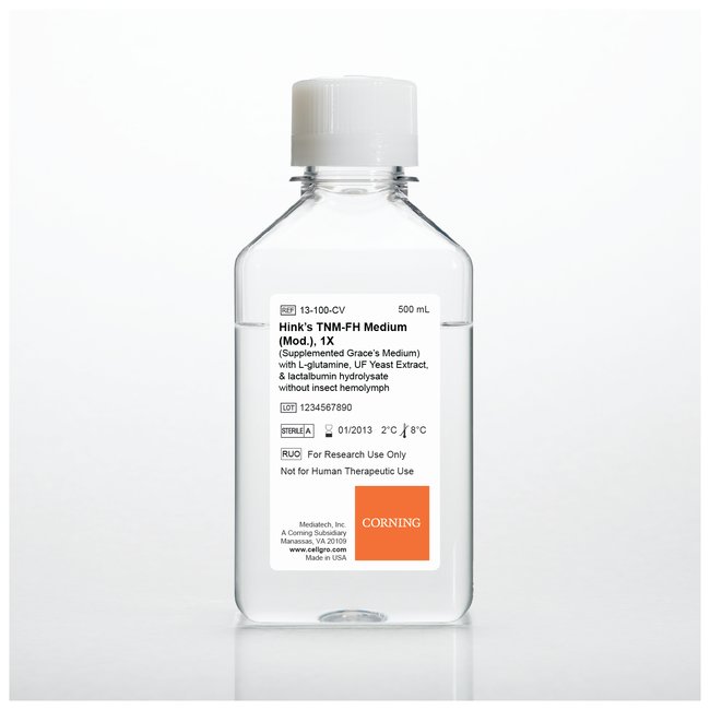 Modified Grace's formulation containing lactalbumin hydrolysate (LAH) and ultrafiltered yeastolateUsed in production of recombinant genes due to their fast doubling times and ability to grow in suspensionOrder InfoLiquid and powdered media are packaged in PET with tamper-evident seals; shipped at ambient temperature. Certificates of Analysis for each lot are available from Mediatech upon request.ComplianceLiquid products are tested for sterility according to FDA Guidelines for the Manufacture of In Vitro Diagnostic Products (January 1994) for sterile labeling.