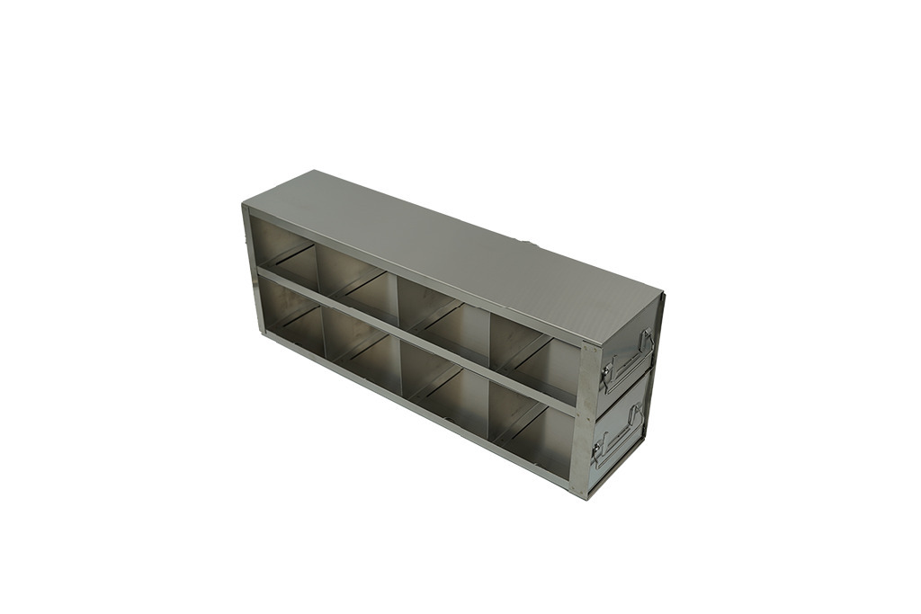 Designed for use with standard 3.75" high polycarbonate boxes, these drawer racks facilitate access to and storage of samples without having to remove the entire rack from the freezer. Made of corrosion-resistant stainless steel, they offer a capacity of 8 and feature dimensions of 5½" in width, 8⅜" in height, and 22" in length. The catalog number is 76052-638.
