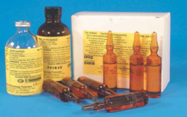 This EM grade aqueous glutaraldehyde, the universal fixative for electron microscopy, is assayed prior to shipping assuring consistent purity and the highest possible quality, free from polymers and other possible contaminents. Purified to EM grade from commercial grade by "all-glass vacuum-distillation". If stored properly, it has a very long shelf life. Packaged in 10 ml, single dose ampoules, sealed under dry nitrogen, and kept refrigerated until it is shipped. EM grade aqueous glutaraldehyde, stored in volumes greater than 100 ml, with repeated defrosting and recapping, will polymerize in time, producing an absorption peak of 235nm rather than the 280nm of pure EM grade. The presence of polymerized glutaraldehyde greatly reduces its efficiency as a cross-linking agent, preventing proper fixation. For this reason, we provide 10 ml ampoules and 100 ml bottle quantities for larger applications.
