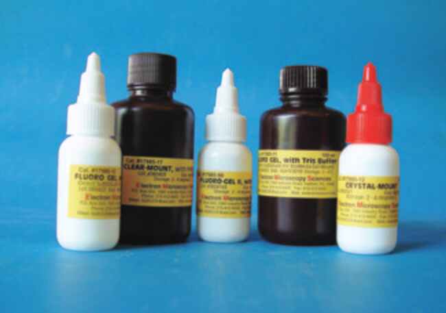 Fluoro-Gel is a water based mounting medium designed for the permanent mounting of fluorescent stained tissues, which may either be damaged or soluble in organic solvents, such as xylene or toluene. This unique formula prevents rapid photo-bleaching of FITC, Texas Red, AMCA, Cy2, Cy3, Cy5, Alexa Fluoro 488, Alexa Fluoro 594, Green Fluorescent Protein (GFP), Tetramethylyrhodamine, Redox, Phycoerythrin (RP-E), Phyocyanin (PC), and Allophycocyanin (APC). The fluorescence is retained during prolonged storage at 4 degree C in the dark. Application: Immunofluorescence, confocal microscope. Contains DAPI (4, 6-diamino-2-phenylindole), a counter stain for DNA.