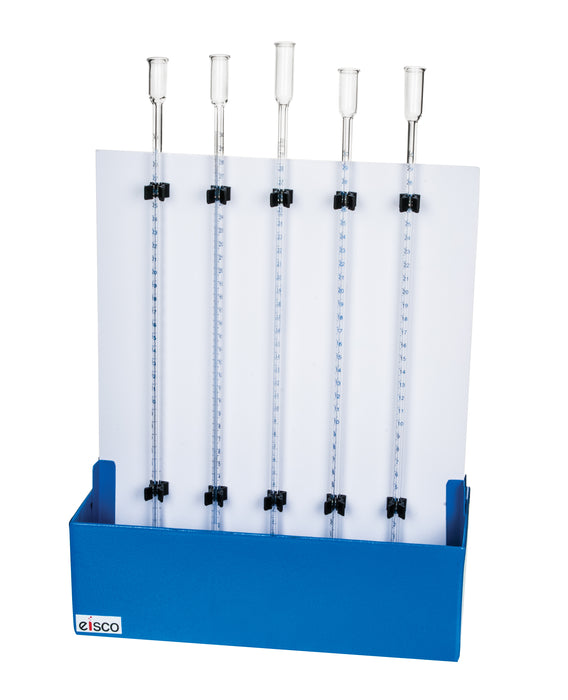Comprising five removable glass tubes in a sliding frame and supported in a water trough. For demonstrating the different thermal expansions of various liquids. Comprising five glass tubes in a frame and supported in a water trough. The frame has a special sliding arrangement with clips to hold glass bulbs with tubes. The bulbs can be easily removed and fixed and have funnel formation on top for easy filling.