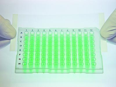 Optical property: Optically clear. Sterility: Non-sterile. This product features 50 µm polyolefin films with 50 µm inert encapsulated silicone adhesive, making it especially suited for qPCR, storage, and protein crystallization applications. The encapsulated silicone adhesive is non-tacky until pressed against the sealing surface, at which time the adhesive is released only in the sealing areas to form the strongest available heat-resistant seal around each well on the plate. Sized to fit within the edges of raised-rim 96-well plates (76.2 mm × 133.4 mm), two end tabs assist in positioning the film on the plate. Key features: • High optical clarity with minimal to no autofluorescence • Chemically inert with no extractables except at extreme pH; DMSO resistant for HTS • Heat-resistant, recommended for temperatures from -70°C to +100°C • Certified free from DNase, RNase, and nucleic acid Sealing film. Material: Polyolefin. Thickness: 101.6 µm. Cat. No.: 89134-428 (non-sterile) or 75805-270 (sterile).