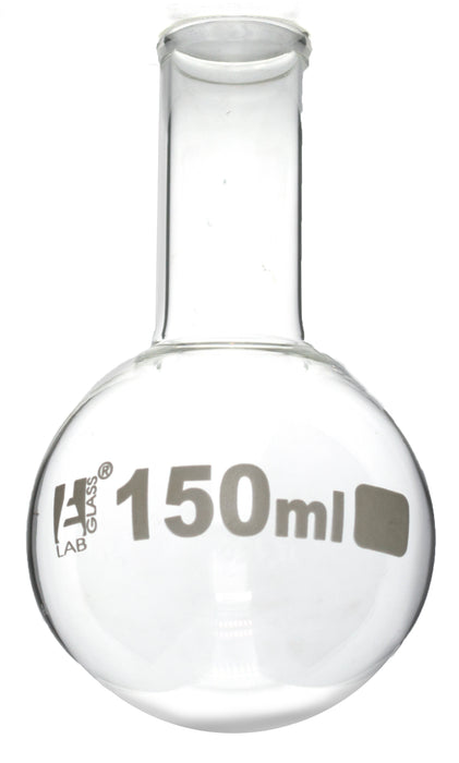 Premium borosilicate round bottom boiling flasks. Eisco glassware is designed to be used in labs but is often used in homes or garages as well.Eisco Labs Borosilicate glass has the following heat tolerances: Strain Point -515°C | Annealing Point 565°C | Softening Point 820°C.