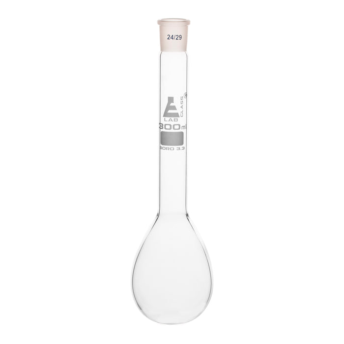 Borosilicate glass, long neck, round bottom, 24/29 socket size. Designed for nitrogen determination as per Kjeldahl method. Conforms to DIN ISO 12360 standard. Flask measures 11.5" tall and 4" width at its widest point.Autoclavable, with superior chemical durability. Low temperature gradient- can withstand high temperatures & thermal shocks. Eisco Labs Borosilicate glass has the following heat tolerances: Strain Point 515°C | Annealing Point 565°C | Softening Point 820°C.Eisco Labs proudly manufactures its own products using state-of-the-art equipment, and following the highest standards of quality control.
