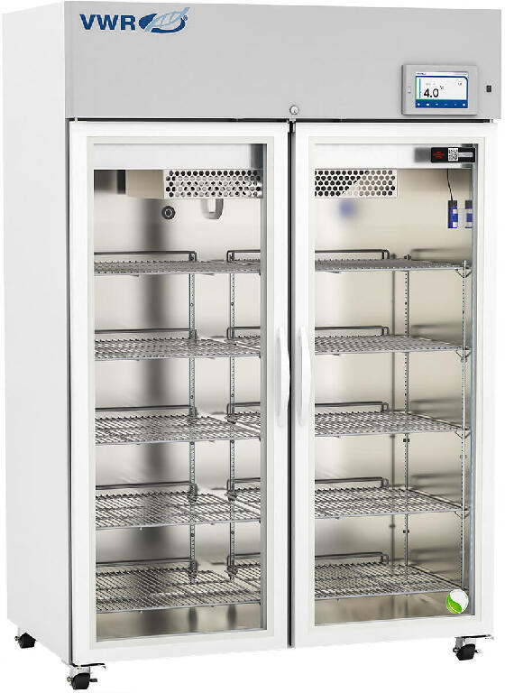 Natural hydrocarbon refrigerants |, 08_Certifications: ETL/cETL Listed, Capacity: 1388 L (49 cu. ft.), VWR® 49 cu. ft. Premium Touchscreen Laboratory Glass Door Refrigerator, Defrost: Cycle defrost, Door Type: 2 glass swing doors, Shelves/drawers: 10 adjustable shelves, Weight: 264 kg (581 lbs.), Temperature range: 1...10 °C, The VWR® Premium Laboratory Touchscreen Refrigerators deliver superior cooling to laboratory environments., Engineered with variable speed compressors (VSCs), these units feature ultra-quiet operation and significant energy savings. VSCs optimize energy consumption by self-adjusting to cooling demands. These compressors also deliver enhanced system performance and provide a longer lifespan than other compressor variations., 04_BodyText: The touchscreen line showcases the most elite features including state-of-the-art touchscreen controllers, advanced alarm systems and data logging capabilities. All units are powered by microprocessor temperature control. These units also utilize natural, hydrocarbon refrigerants for environmental health and energy efficiency. Upgrade your laboratory with these advanced units and welcome energy savings, noise reduction, smooth operation, and improved system performance to your work environment., 02_BulletPoint: Variable speed compressors |