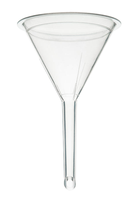 Here is the corrected text: Industrial-quality filter funnels made of polypropylene plastic excel at separating solids from liquids and facilitating transfers of liquids to narrow-mouthed containers. The funnel measures 3.7 inches in total length and 2 inches in diameter, with a stem that is 1.9 inches long and has an outer diameter of 6.5mm. Designed for use in professional laboratories, it is also an ideal choice for science classrooms and household use. Eisco Labs proudly manufactures its own products using state-of-the-art equipment and following the highest standards of quality control. Each product is carefully designed by a team of laboratory professionals and experienced engineers with quality and durability in mind. They are manufactured with only the highest-grade raw materials, according to international quality standards, to ensure that they can withstand use in even the toughest laboratory environments.