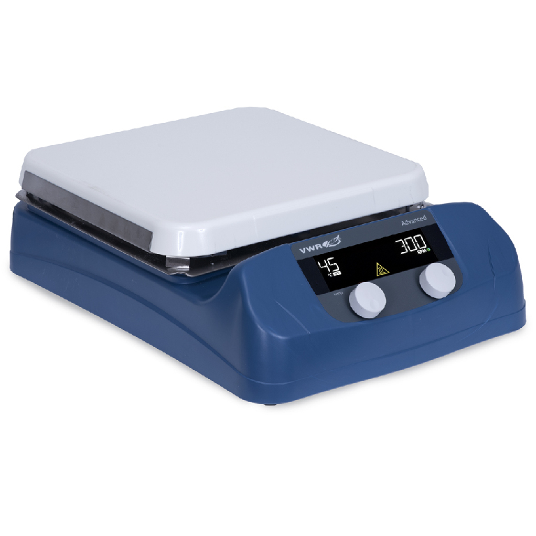 Temperature range: Ambient 5…500 °C, Advanced magnetic hotplate stirrers are designed to deliver accurate and repeatable results in all research, academic, and industrial applications. With temperature ranges up to 500 °C and stirring speeds reaching 1600 rpm, the VWR® hotplate stirrers provides proper mixing and superior temperature control. Available in three sizes and a choice of two top plate materials., These microprocessor-controlled units feature a front-facing control panel with an easy-to-read LCD that displays temperature settings, speed settings, and intuitive icons., 04_BodyText: Hotplate stirrers are available with ceramic or aluminum top plate material. Reflective, white ceramic tops are chemical-resistant and easy to clean. Durable aluminum tops will not crack or chip and offer a more even heating surface. Display will show last used settings, even after the power has been turned off. For additional safety, a large, hot symbol warning light is illuminated when the hot plate is in use, and remains lit until the top plate is below 40 °C. Enhanced software for heat monitoring with an early detection system utilizing two independent safety controls to continuously monitor the electronics and shuts off heating before an over temperature condition occurs., 05_BodyText: Enhanced electronics regulate the robust heater, which brings samples to the desired temperature quickly and efficiently. The low-profile design utilizes minimal bench space and permits use within a fume hood. Unit housing is constructed of a heat and chemical-resistant polymer that remains cool to the touch during operation. The spill-resistant design channels fluids away from internal components in the event of spills. | Optional in-use cover helps protect the control panel from splashes., 06_BodyText: Off centered support rod holder accepts optional support rod kit or rods up to 13 mm (0.5") in diameter. When using the base plate 89171-872 on the VWR® round top magnetic hotplate stirrers 76447-056 and 76447-054, the 89202-638 threaded 13×578 mm stainless steel support rod is indicated and will thread directly to the center of the base plate., 07_BodyText: Heating models include a probe connection for the optional temperature probes. Temperature calibration feature ensures greater accuracy of the sample or top plate temperature., 02_BulletPoint: 230 V model | Excellent temperature uniformity and powerful stirring | Easy to read, large LCD displays temperatures and speeds | Heating models include probe connection for optional temperature probe | Industry leading safety features | Cool touch, chemical-resistant housing | Five year warranty, 13_Caution: 230 V models. Corresponding models with voltage suitable for use in US (76447-024, 76447-032, 76447-044, 76447-056) are also available, please see separate product page., 08_Certifications: RoHS compliant. TUV listed. CE marked., 11_Delivery: Units are supplied with a 234 cm (92") three-wire cord and plug. Stirring models are supplied with a 3.8 cm (1.5") PTFE coated stir bar. 230 V models include detachable 234 cm (92") Euro and UK plugs and a CH adapter., 10_Ordering: Full specification details of stirrer and hotplate only models are given under separate entries, please view full details by searching for the relevant product code., Irregular Voltage: Y, Hotplate stirrer, Environmentally Preferable: Sustainable Packaging, Model: Hotplate stirrer, Shipping Weight: 3,5 kg, Speed Range: 60 - 1600 rpm, Temperature Stability: ±3% >100 °C, ±2°C ≤100 °C, Operating conditions: 5...40 °C (41...104 °F), Plate Dimensions: 7×7", Speed stability: ±2%, Cat. No.: 76447-038, Electrical: 230 V, 6 A, 1380 W, Speed range: 60 - 1600 rpm, Max. capacity: 10 L, Overall dimensions: 310×220×120 mm (12.2×8.8×4.8"), Top plate dimensions: 7×7", Top plate material: Ceramic, Final SAP Desc Link: 7025064, SAP Description Status: Ready, Temperature range: Ambient 5…500 °C, Advanced magnetic hotplate stirrers are designed to deliver accurate and repeatable results in all research, academic, and industrial applications. With temperature ranges up to 500 °C and stirring speeds reaching 1600 rpm, the VWR® hotplate stirrers provides proper mixing and superior temperature control. Available in three sizes and a choice of two top plate materials., These microprocessor-controlled units feature a front-facing control panel with an easy-to-read LCD that displays temperature settings, speed settings, and intuitive icons., 04_BodyText: Hotplate stirrers are available with ceramic or aluminum top plate material. Reflective, white ceramic tops are chemical-resistant and easy to clean. Durable aluminum tops will not crack or chip and offer a more even heating surface. Display will show last used settings, even after the power has been turned off. For additional safety, a large, hot symbol warning light is illuminated when the hot plate is in use, and remains lit until the top plate is below 40 °C. Enhanced software for heat monitoring with an early detection system utilizing two independent safety controls to continuously monitor the electronics and shuts off heating before an over temperature condition occurs., 05_BodyText: Enhanced electronics regulate the robust heater, which brings samples to the desired temperature quickly and efficiently. The low-profile design utilizes minimal bench space and permits use within a fume hood. Unit housing is constructed of a heat and chemical-resistant polymer that remains cool to the touch during operation. The spill-resistant design channels fluids away from internal components in the event of spills. | Optional in-use cover helps protect the control panel from splashes., 06_BodyText: Off centered support rod holder accepts optional support rod kit or rods up to 13 mm (0.5") in diameter. When using the base plate 89171-872 on the VWR® round top magnetic hotplate stirrers 76447-056 and 76447-054, the 89202-638 threaded 13×578 mm stainless s
