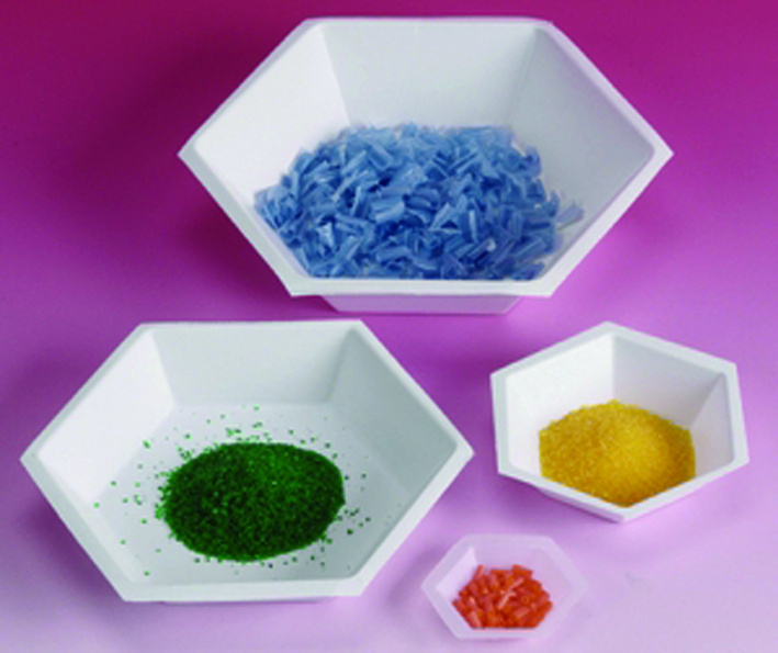 These polystyrene weighing boats feature smooth surfaces that enable accurate pour-out with minimal sample loss. They are biologically inert and resistant to dilute and weak acids, aqueous solutions, alcohols, and bases. The flexible, antistatic boats bend at points to form pouring spouts. Available in four sizes: * Small: Top I.D. 38 mm (1½"), Base I.D. 25 mm (1"), Cat. No.: 10770-452 * Medium: Top I.D. 64 mm (2½"), Base I.D. 51 mm (2"), Cat. No.: 10770-454 * Large: Top I.D. 102 mm (4"), Base I.D. 76 mm (3"), Cat. No.: 10770-456 * X-Large: Top I.D. 127 mm (5"), Base I.D. 89 mm (3½"), Cat. No.: 10770-458 Key features include: * Flat bottom to avoid tipping * Sloping sides for accurate transfer * Antistatic properties * Temperature resistance up to 70°C (158°F)