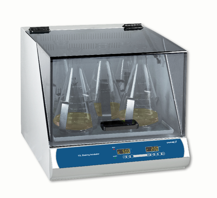 High capacity benchtop incubated shaker that accepts up to 9×1 or 5×2 L flasks., The VWR® incubated shakers are compact orbital shakers with precision temperature control., 04_BodyText: Other models in the series are available offering a variety of temperature range capabilities and chamber sizes., 02_BulletPoint: LED display for controlling over time, temperature and mixing speed | Unique platform accepts magnetic clamps for easy attachment of flasks and bottles, 08_Certifications: CE marked., 10_Ordering: Supplied without accessory clamps. A wide range of accessories are available to order separately. | Supplied with a standard non-skid, silicone mat that is suitable for low speed shaking of tissue culture flasks, Petri dishes and staining trays. For high speed shaking, an optional universal/magnetic platform is available with clamp accessories for a variety of flasks, tubes and other common vessels., Capacity: 5×2 L or 9×1 L, Temperature Range: Ambient 5…60 °C, High capacity benchtop incubated shaker that accepts up to 9×1 or 5×2 L flasks., The VWR® incubated shakers are compact orbital shakers with precision temperature control., 04_BodyText: Other models in the series are available offering a variety of temperature range capabilities and chamber sizes., 02_BulletPoint: LED display for controlling over time, temperature and mixing speed | Unique platform accepts magnetic clamps for easy attachment of flasks and bottles, 08_Certifications: CE marked., 10_Ordering: Supplied without accessory clamps. A wide range of accessories are available to order separately. | Supplied with a standard non-skid, silicone mat that is suitable for low speed shaking of tissue culture flasks, Petri dishes and staining trays. For high speed shaking, an optional universal/magnetic platform is available with clamp accessories for a variety of flasks, tubes and other common vessels., VWR® Incubated shaker, Shaking Speed: 30 - 300 rpm, Cat. No.: 76407-112, Electrical: 120 V, 50/60 Hz, 450 W
