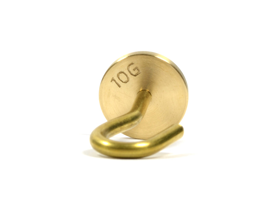Individual hooked weights made of brass, each weighing 10g and measuring 18.8mm in diameter.