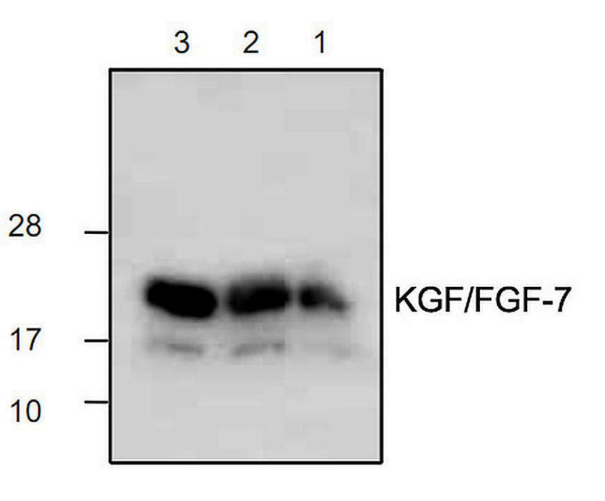Kgf/Fgf-7 PAB 30ug^ Kgf/Fgf-7, polyclonal antibody, Host: Rabbit, Species: Human, Immunogen: E. Coli expressed human KGF/FGF-7, Isotype: IgG, Synonym: FGF-7, FGF7, FGF 7, FGF-7 Antibody, Anti-FGF-7 antibody, Anti-FGF-7, FGFs, fibroblast growth factor 7, anti-FGF7, anti-KGF, Apps: WB, Size: 30ug