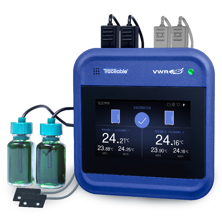 Kits come with a temperature smart probe and a door sensor and can support up to two of each. Smart Probes measure laboratory conditions such as temperature, and have built-in NIST calibration for quick setup and easy replacement. They feature an intuitive touchscreen display, simple one-time setup that only takes a few minutes, enhanced security with on-board measures including optional PIN protection to prevent tampering, and work with the TraceableLIVE cloud service for alerts, reporting, and configuration. Each kit includes a NIST-traceable certificate of calibration from our A2LA-accredited ISO/IEC 17025:2017 (1750.01) laboratory.