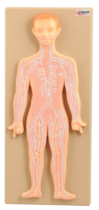The lymphatic system is an integral part of the immune system, playing a vital role in the body's defense against diseases. Designed with input from medical and educational professionals, this model is custom-molded using high-quality, non-toxic polymers and polyvinyl chloride (PVC) for durability. Skilled artists hand-paint it to deliver an exceptionally high level of detail, using vibrant and safe paint. The model includes a key card that identifies 9 labeled structures. It measures 18"L x 8"W x 1.7"H on its base.