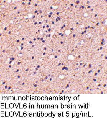 Antibody ELOVL6 0.1MG^ Polyclonal Antibody, Elongation of very long chain fatty acids protein 6, Host: Rabbit, Species Reactivity: Human, Mouse, Rat, Isotype: IgG, Immunogen: ELOVL6 Antibody was raised against a 15 amino acid synthetic peptide near the amino terminus of the human ELOVL6.