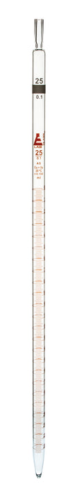 Pipette, 25ml - Class AS, Tolerance ±0.100 - Amber Graduation - Color Code, White - Borosilicate Glass La