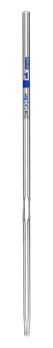 Volumetric pipette with a 1ml capacity. Color code: Blue. Eisco Labs volumetric pipettes feature color coding for easy volume identification. Made of high-quality Borosilicate 3.3 glass, and features a Class A tolerance of ±0.007ml, as per DIN ISO 648 standard. Pipette is calibrated for delivery. Single, white graduation line, and blue specifications for optimal clarity against clear liquids. Pipette measures 12.5" in length and is 7mm in diameter. Autoclavable, with superior chemical durability. Low temperature gradient- can withstand high temperatures & thermal shocks. Eisco Labs Borosilicate glass has the following heat tolerances: Strain Point -515°C | Annealing Point 565°C | Softening Point 820°C.