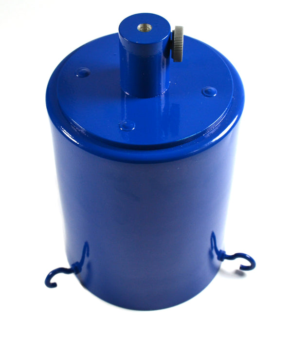This cylindrical vessel measures 87 mm in diameter and 100 mm in height, designed to fit above a clinostat in place of the cork disc. It holds any size or shape pot up to 75 mm in diameter. To secure the plant in position, pack damp moss or other suitable material under and around the pot, then use cords or rubber bands slipped under three small hooks fitted near the upper rolled edge of the holder. This durable aluminum construction is for use with a clinostat to alter the effects of gravitational pull on plant growth.