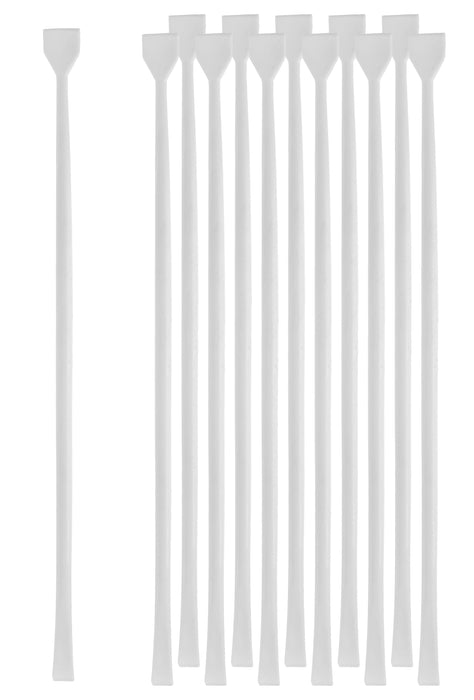 This pack of twelve multipurpose stirring rods, reminiscent of those used by police, are made of high-quality polypropylene. Each rod features spatulas of different widths at each end, measuring 0.5 inches and 0.3 inches wide. The stir rods measure 9.75 inches in total length and 0.2 inches in diameter. Designed for use in professional laboratories, they are also an ideal choice for science classrooms and household use. These autoclavable rods offer superior chemical durability and heat tolerance, withstanding temperatures ranging from -20°C to 135°C.