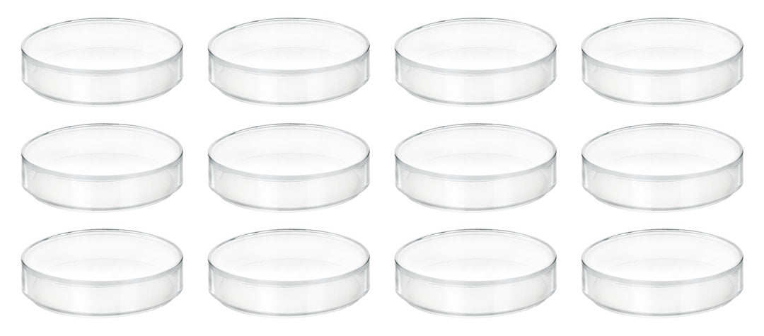 Pack of 12 petri dishes with lids made of high quality, translucent polypropylene plastic. Each dish measures 2" (50mm) in diameter and 0.5" (13mm) deep. Lids measure 2.1" (54mm) in diameter. Unbreakable, non-toxic, non-sterile, multifunctional and ready to use. Excellent for general laboratory applications, including cell culturing, plant germination, precipitate drying and solvent evaporation, home or classroom science experiments, crafting, small storage solutions and more. Petri dishes are reusable and simple to clean. Top rack dishwasher safe.