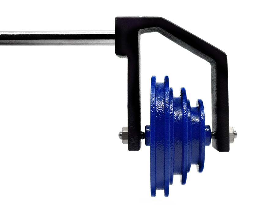 3 step differential pulley featuring 30mm, 40mm and 50mm steps. Ideal for classroom demonstrations pertaining to mechanical advantage. Rod measures 3.75" long. Clamp not included.