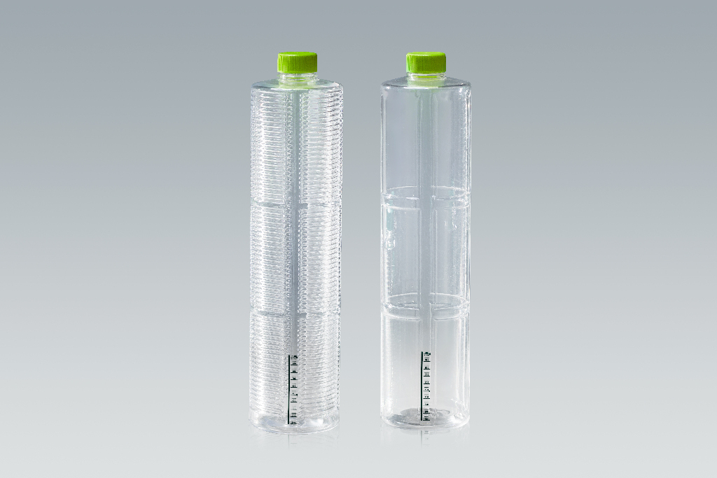 Roller Bottles are optimal vessels for large-scale cell growth and multiplication, suitable for both research and manufacturing applications. They feature two different cap styles that can be used in both open and closed systems, making them compatible with all common instruments and automation. Each case has a labeled lot number, and every bottle features silk-printed graduations. These bottles are ideal for the growth of mammalian cells for virus propagation and bio-product production. They have a working volume of 340-510 ml and a growth area of 1700 cm² or 4250 cm². The bottles are DNase/RNase free, non-pyrogenic, and sterilized by electron beam irradiation. They can withstand temperatures ranging from -20°C to +50°C. The bottles come in different capacities, including 5000 ml, and have either a plug seal cap or a vent cap. They are surface-treated, sterile, and environmentally certified with an ISO 14001 certificate (No.: 04923E00243R0M). The packaging consists of 1 bottle per bag, with 12 bottles per case.