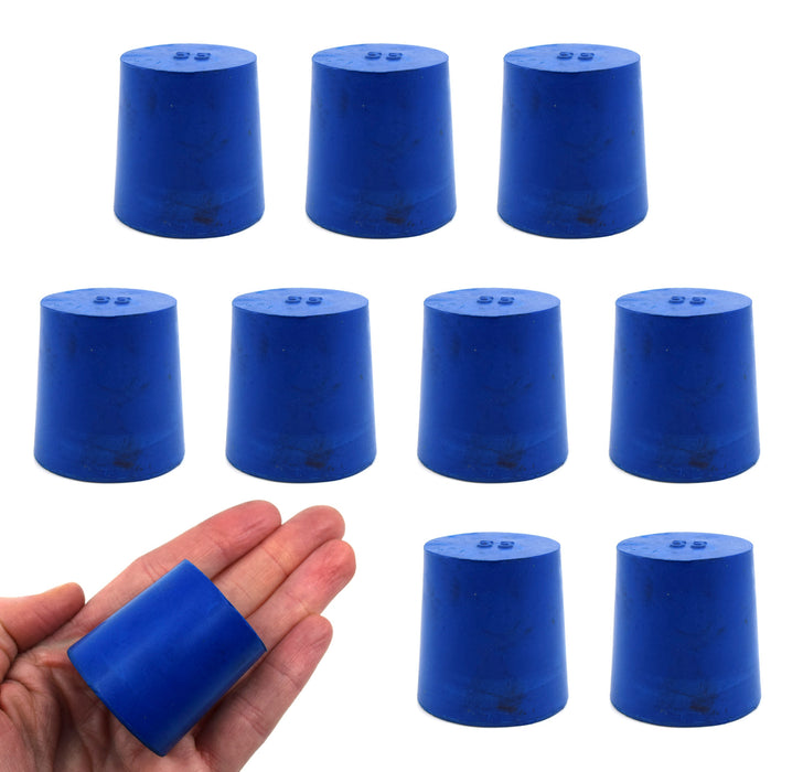Solid blue neoprene stoppers: Bottom 33mm Top 38mm Length 38mm Made from long lasting neoprene rubber, oil resistant, Use up to temps of 250°F / 120°C , Pack of 10