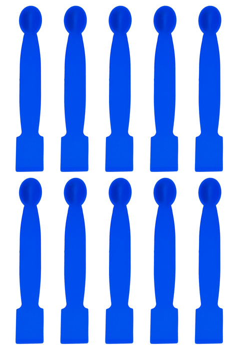 Blue polypropylene spatula with oval scoop spoon on one end and flat edge with on the other end. This is made of polypropylene which is autoclavable and excellent replacement of metallic scoops. Total Length 5.90" (150mm), Oval scoop measures 0.75" (19mm) Wide and 1.02" (26mm) long, Flat side measures 0.79" (20mm) wide by 1.02" (26 mm) long. Handle is 0.63" (16mm) wide, 0.12" (3 mm) thick. These scoops are great for adding small amounts of ingredients and mixing. Pack of 10.