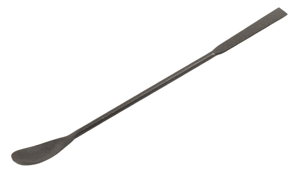 Here is the corrected text: This single, high-quality stainless steel laboratory spatula spoon features a Teflon-coated, non-stick surface that resists harsh chemicals. The total length of the spoon/spatula measures 9 inches. It has a flat blade spatula measuring 0.3 inches wide on one end and a spoon-shaped scoop measuring 0.5 inches wide on the other end. Designed for use in professional laboratories, it is also an ideal choice for science classrooms and household use. This versatile tool is great for general applications, scooping, sample transferring, and mixing of powders and pastes. It is also available as a pack of 10 (CH0635TFCPK10).