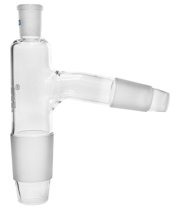 Plain still head made of high quality, heavy duty 3.3 borosilicate glass. B14 thermometer socket. Cone size to fit flask is 34/35, and cone size to fit condenser is 24/29. Measures 6.2" in height and is 5" in total width. Eisco Labs Borosilicate glass has the following heat tolerances: Strain Point -515°C | Annealing Point 565°C | Softening Point 820°C