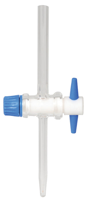 Stopcock made of high quality, heavy duty, 3.3 borosilicate glass. PTFE key, 2.5mm plain bore, straight pattern. Total length of 5.5".Eisco Labs Borosilicate glass has the following heat tolerances: Strain Point 515°C | Annealing Point 565°C | Softening Point 820°C. Calibrated for delivery.