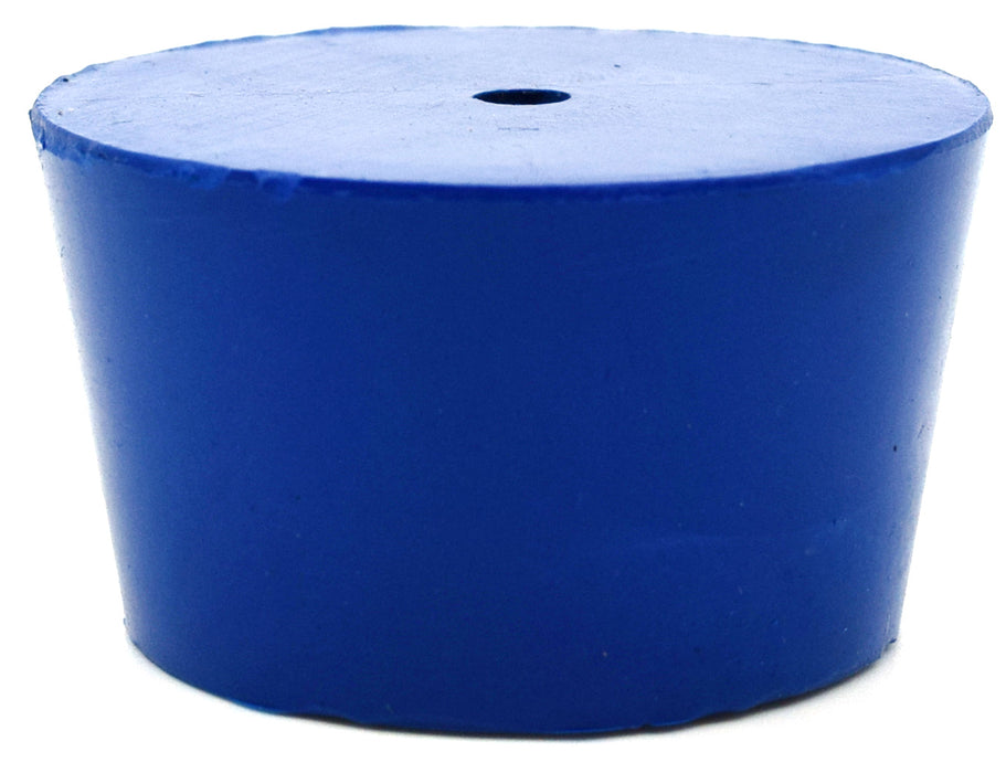 This pack of ten #8.5 stoppers is made of long-lasting neoprene rubber and features a blue color. Each stopper has one hole measuring 5 mm in diameter. Manufactured according to sizes recommended by ASTM standards, each stopper measures 25 mm in length, with a base diameter of 36 mm and a top diameter of 43 mm. The neoprene rubber construction makes it suitable for use with petroleum products, minerals, oils, and fats, as well as most inorganic acids and bases. It is resistant to temperatures ranging from -40°C to 130°C.