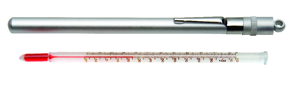 Pocket glass thermometers feature permanently fused markings that are easy to read against the thermometer background. These thermometers come with a heavy-duty case, compact size, and glass fabrication.